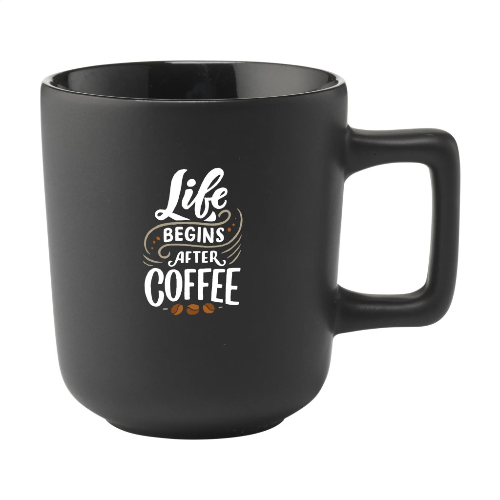 Hochwertiger und langlebiger Druck auch bei Spülmaschinennutzung, lebendige Farben, erhältlich in weiß, blau, grau und schwarz, macht diese Tasse einen sehr guten Eindruck bei Kunden, Mitarbeitern und in der Gastronomie.